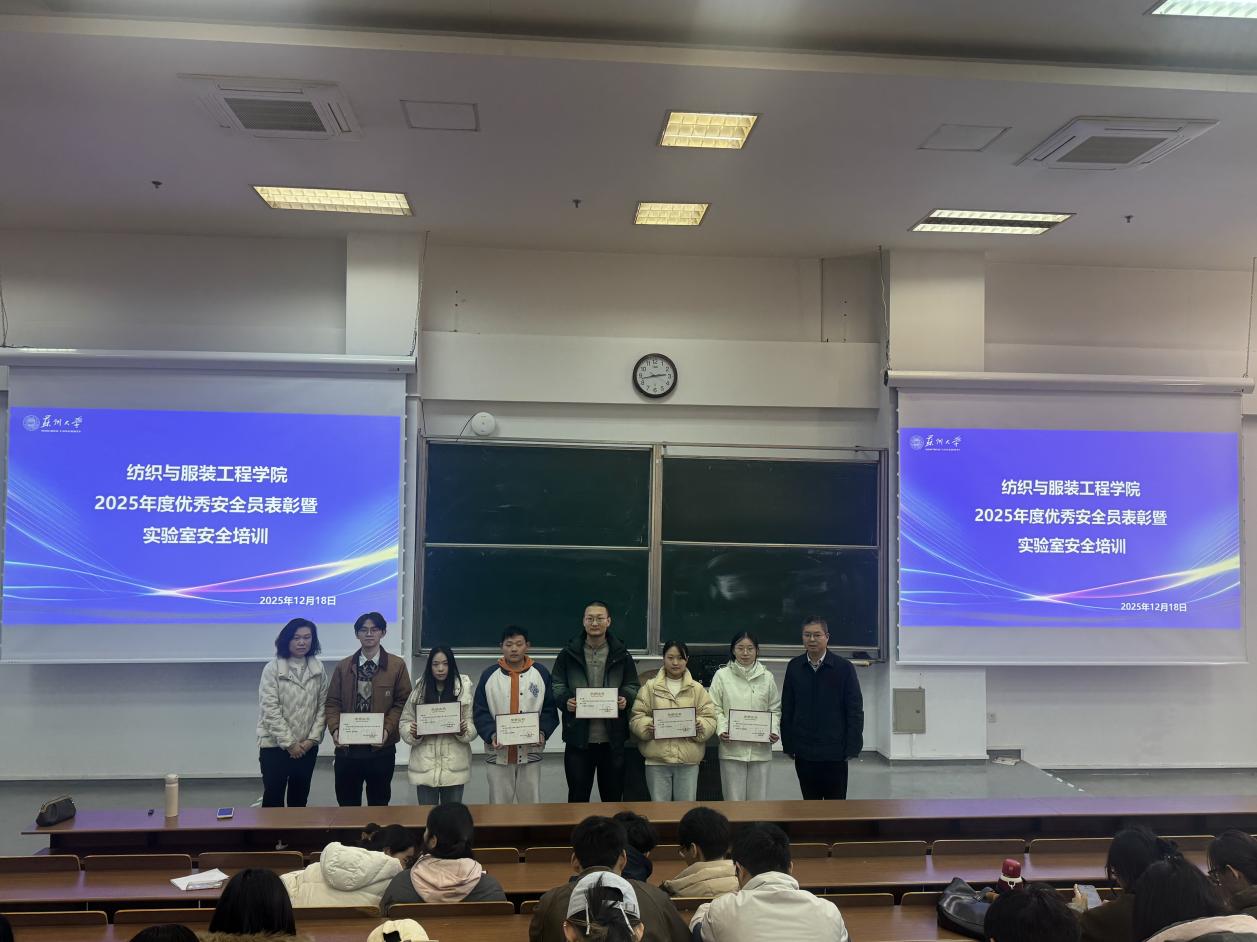 为进一步筑牢实验室安全防线,强化师生安全责任意识,充分发挥安全员在实验室安全管理中的关键作用,12月18日学院开展2025年度优秀安全员表彰暨实验室安全培训工作。学院党委书记肖甫青、学院专职安全员银华、学院辅导员李雪、研究生安全员和即将进入实验室的研一学生和本科生参加培训,培训由现代丝绸国家工程实验室副主任刘欣亮主持。